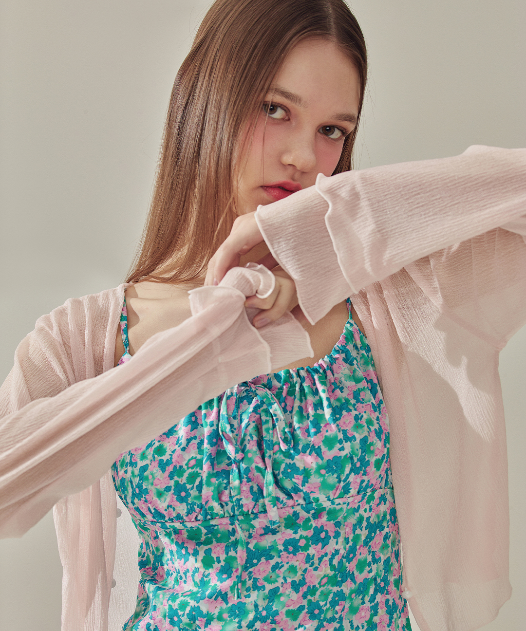 쉬폰 러플 크롭 오픈 가디건 - Pink [여름가디건/휴양지가디건]