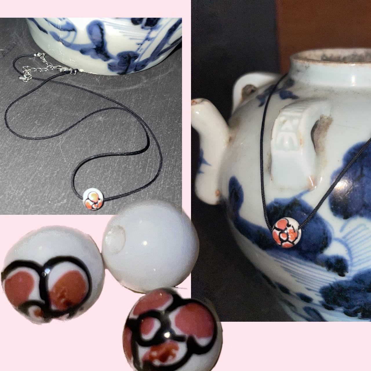 매화 도자기 구슬 초크 목걸이