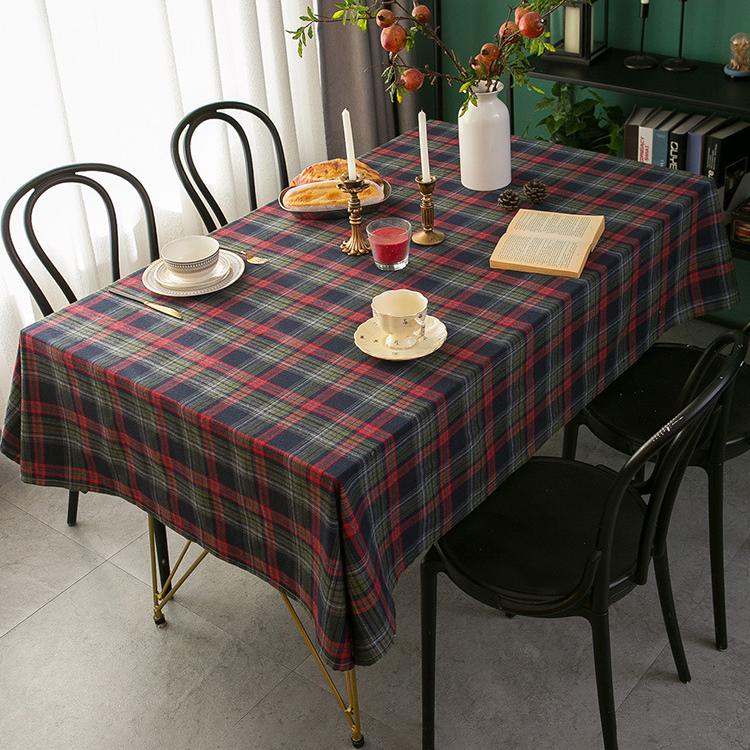 크리스마스 테이블보 식탁보 블루 체크 2인용 90X90 원형
