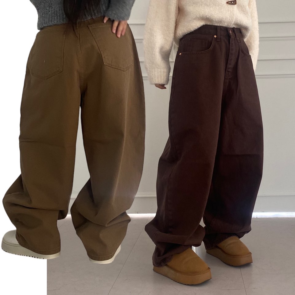 3일만할인! 당일출고!배기핏미쳤..🤎3col 캐주얼 하이웨스트 항아리핏 브라운 통넓은 큰 루즈핏 와이드 롱 데님 베이지 바지 팬츠 네이비