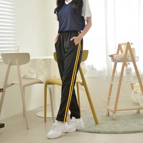 두줄 노랑 라인 생활 복 하의 여성 용 츄리닝 바지 트레이닝 마롱패션