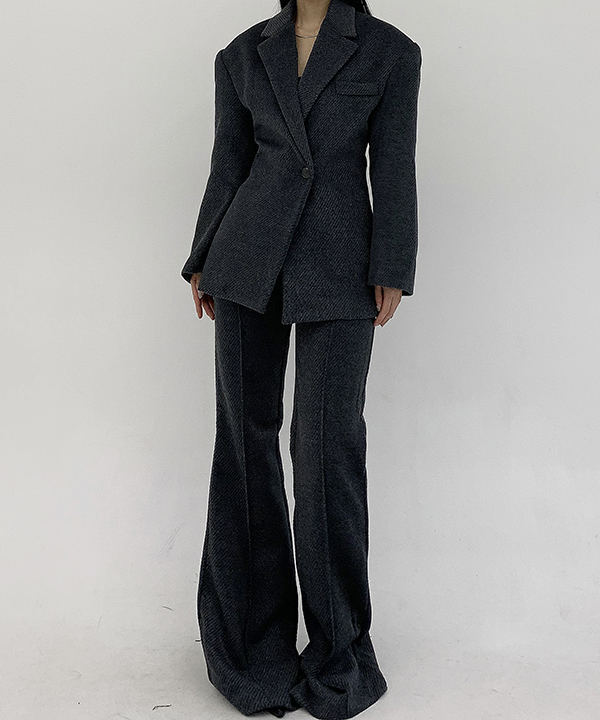 모드 베이직 트윌 올드머니 로우라이즈 부츠컷 팬츠(블랙,그레이)