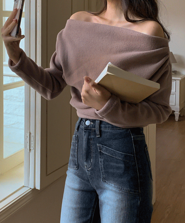 [한정수량 SALE]그레이프 셔링 오프숄더니트