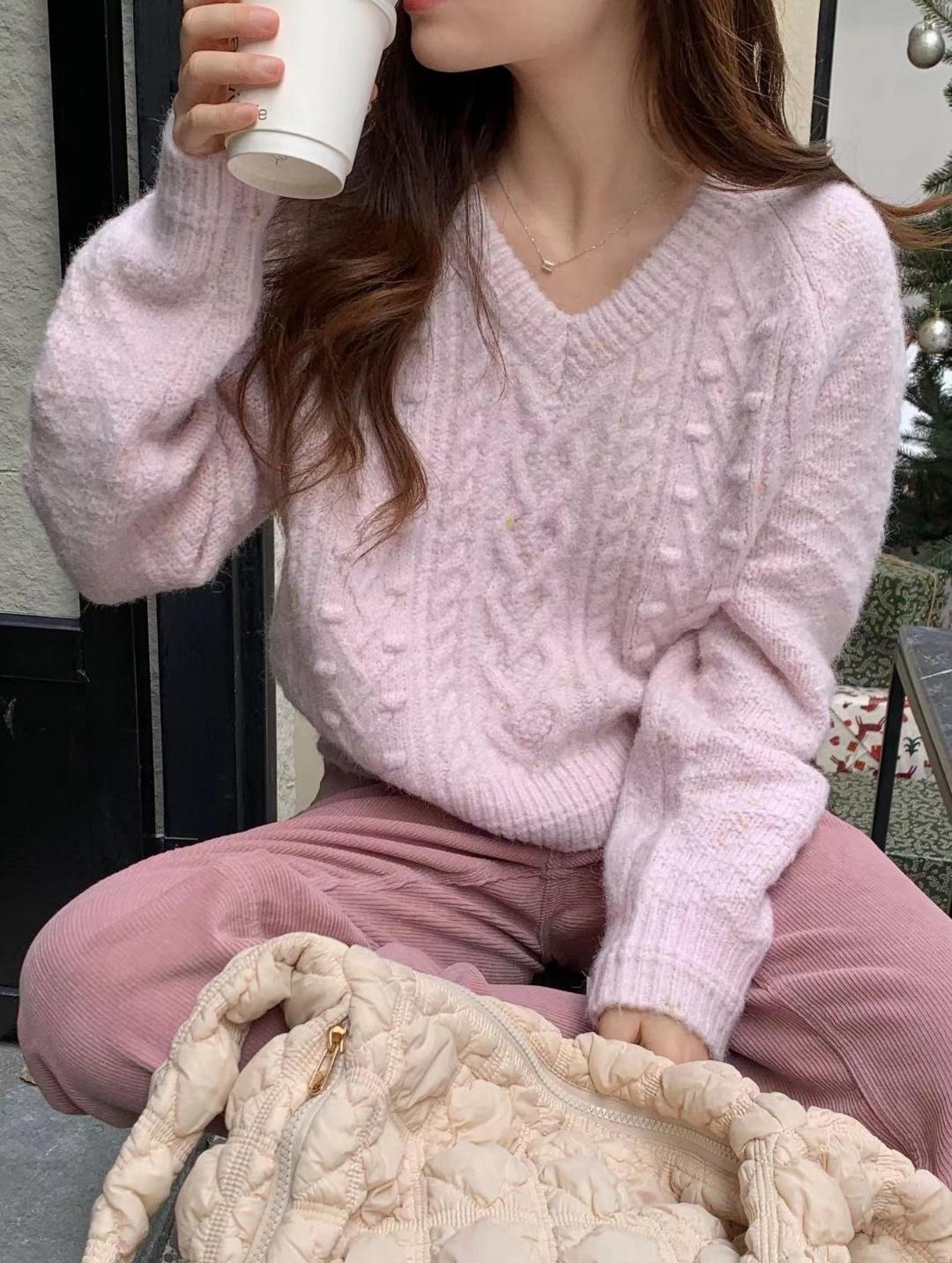 엘슨 브이넥 꽈배기 크롭 니트 스웨터 4color