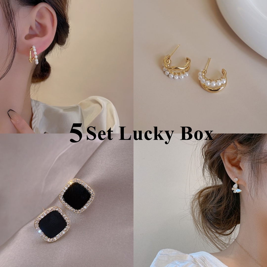 [5개 가격/귀찌/한정판매] 귀걸이 귀찌 럭키 랜덤박스 롱 링 심플 화려한 진주 나비 미니 세트 하객 작은 딱붙는 웨딩 스냅 꽃 드롭 하트 귀걸이