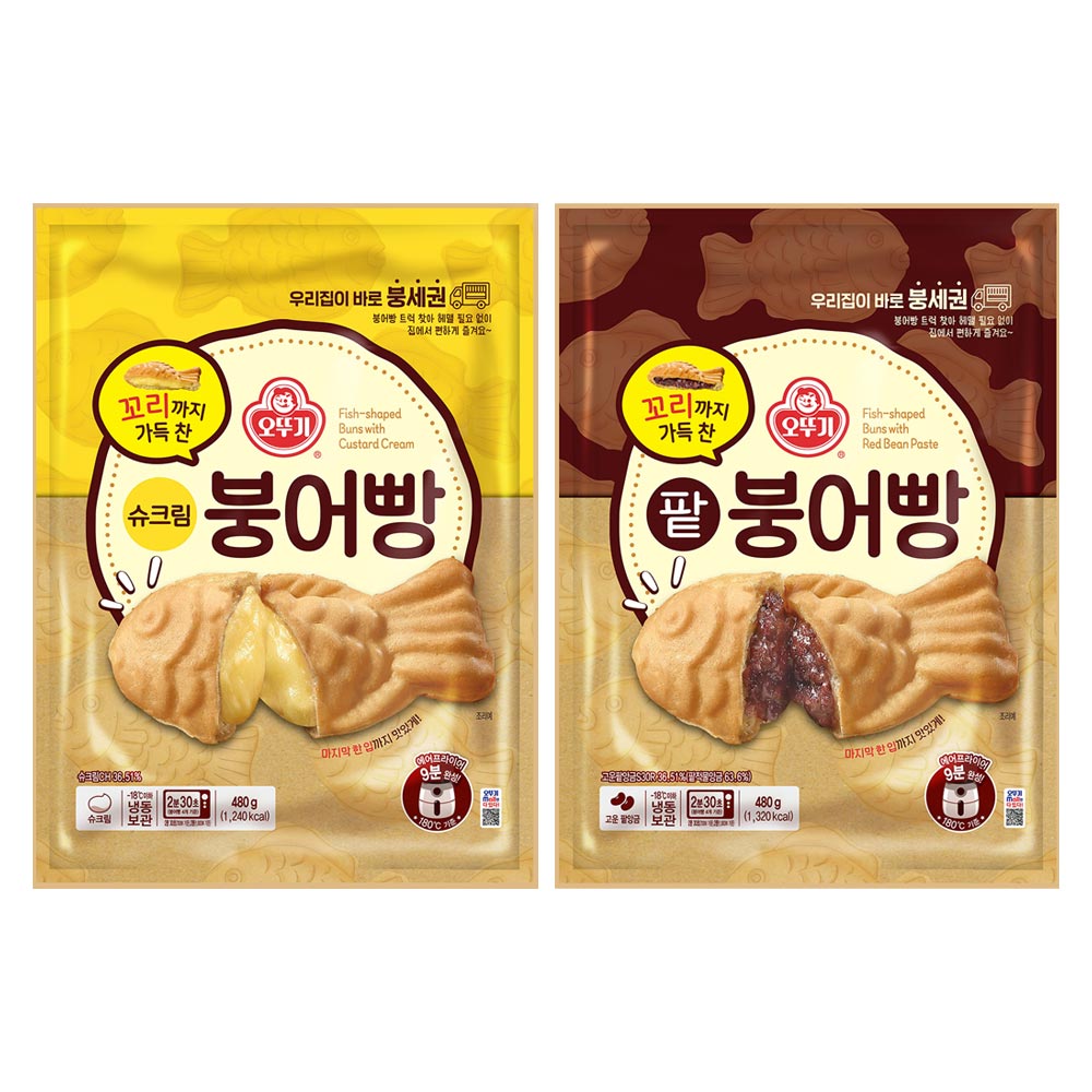 오뚜기 꼬리까지 가득 찬 붕어빵 X 2개 (슈크림, 팥)