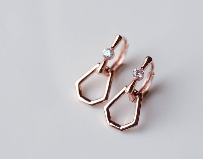 14k 18k 깔끔한 육각 큐 포인트 귀걸이
