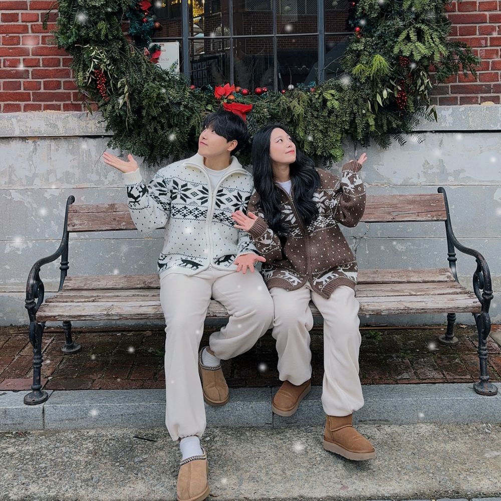 [주문폭주🚀] 크리스마스 겨울 남녀공용 눈꽃 노르딕 니트 집업 오버핏 데이트 커플 시밀러룩