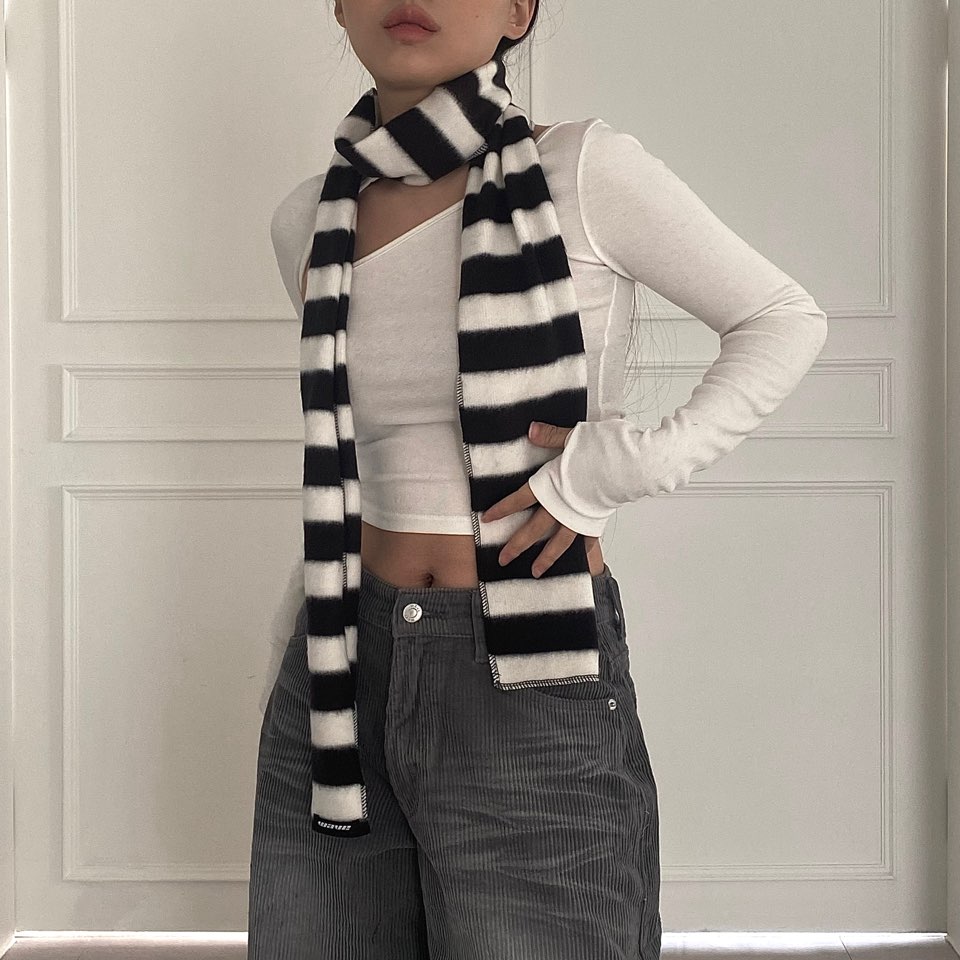 오늘출발! 기모머플러🖤🤍 2col 단가라 롱 체크 브라운 스프라이트 배색 기모 겨울 니트 머플러 스판 목도리 스카프