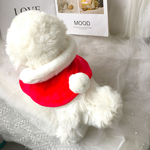 [크리스마스시즌🎄] 강아지 보들 퍼안감 동글꼬리 산타 리본 케이프 망토 (XS~L)
