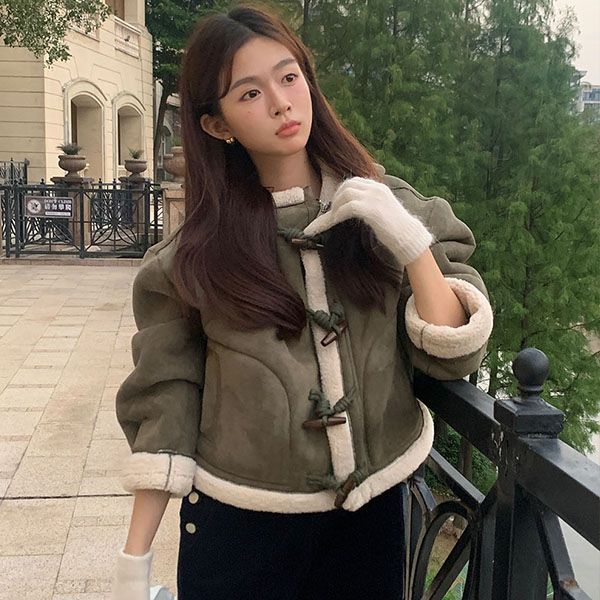 [BEST❤️] 따뜻한 겨울 크리스마스 데이트 데일리 스웨이드 후드 버클 후리스 크롭 무스탕 자켓