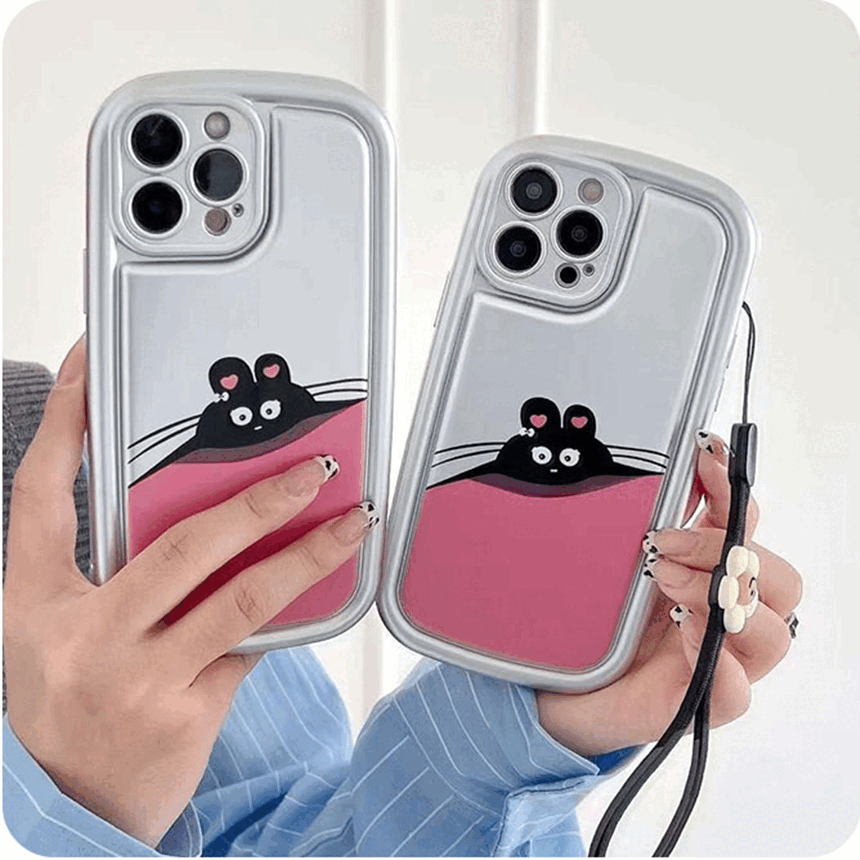 [무선충전/스트랩 포함] 아이폰 15/14/13 블랙 베어 아이폰 핸드폰 케이스 프로 플러스 프로맥스