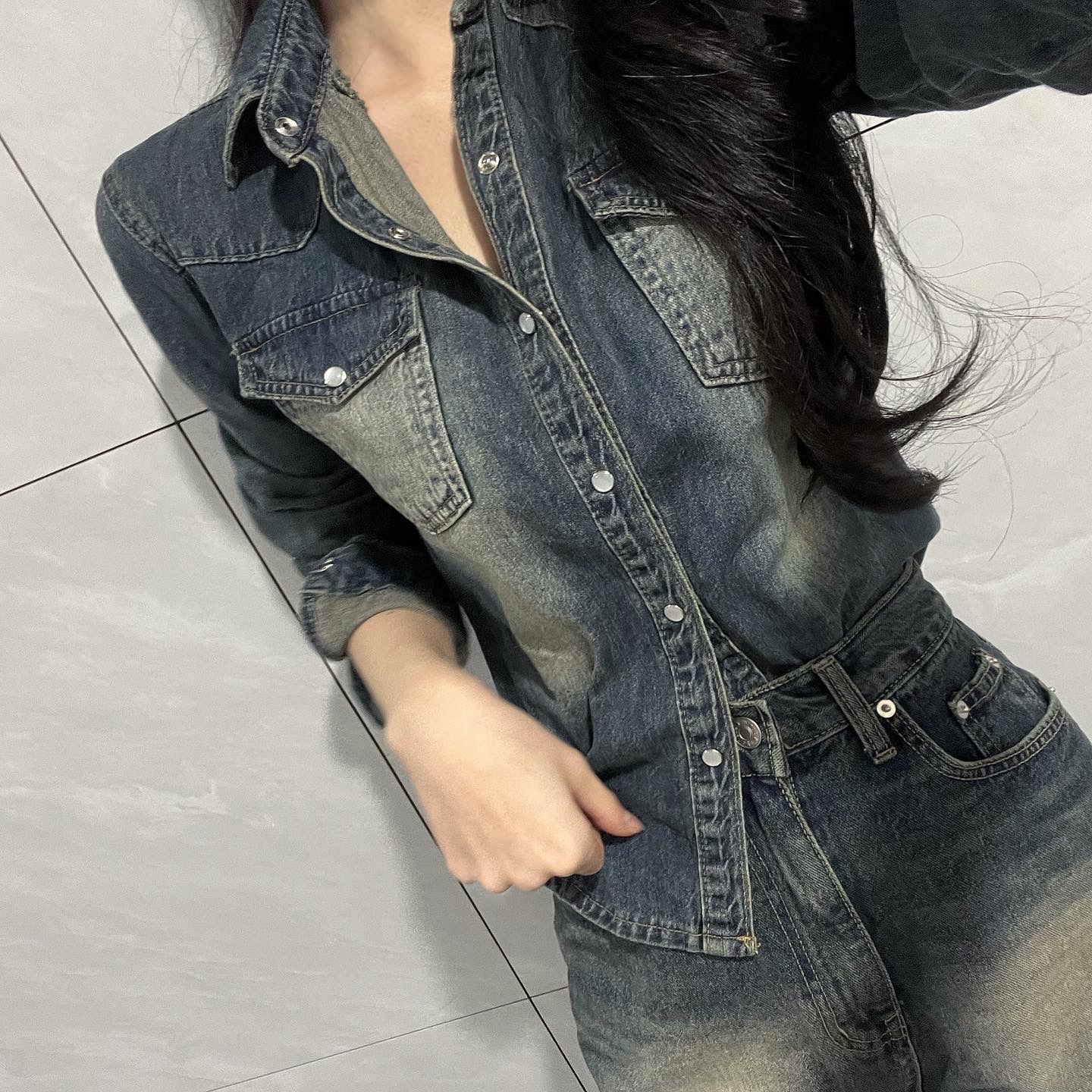 [ *단독진행*당일출고 국내제작 / 면100 ] 에인 빈티지 워싱 포켓 청 데님 셔츠 남방 3size one color