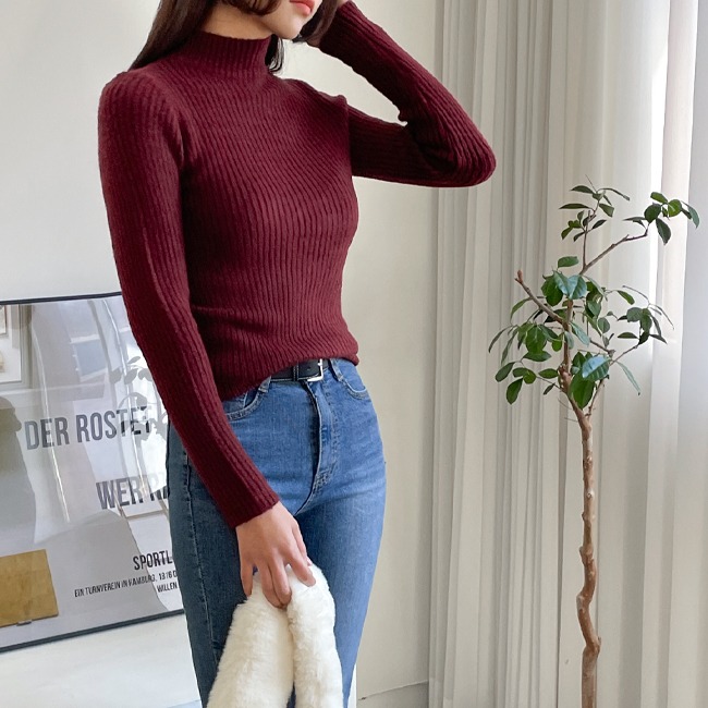 세로 도톰 왕골 반폴라 니트 [44~77 사이즈]