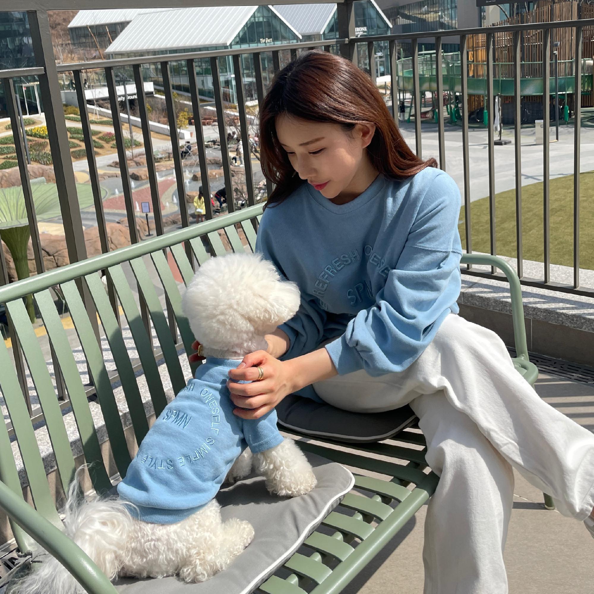[무배] 강아지옷 커플룩 스카이블루 레터링 쭈리 맨투맨 S-4XL, 견주용