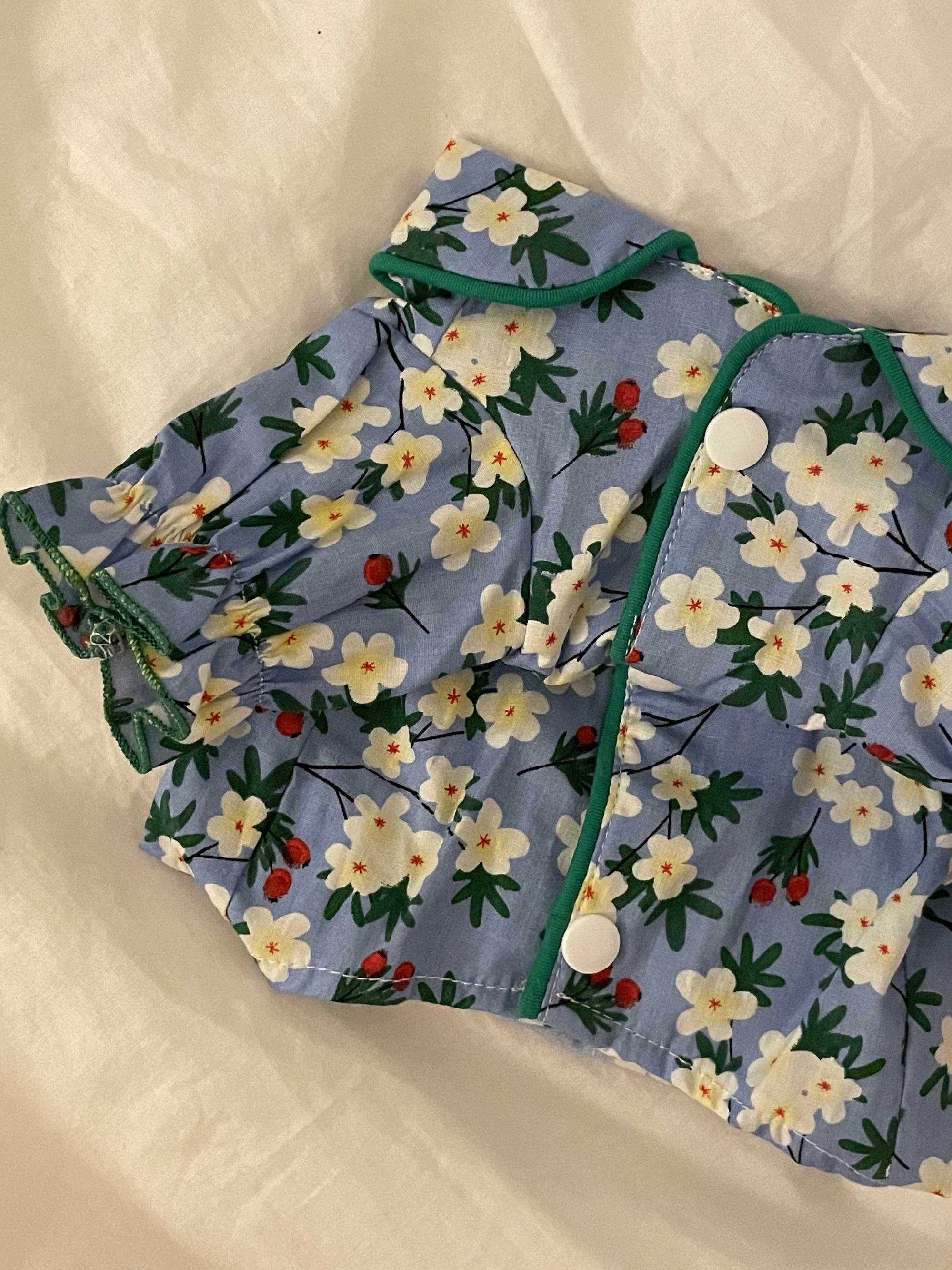 강아지블라우스 애견플라워블라우스 블루 꽃셔츠