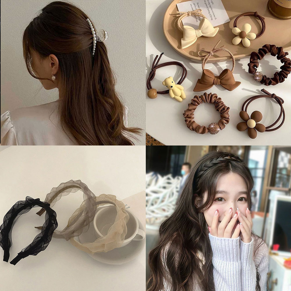 헤어 모음집✨머리띠9종 벼머리 땋은머리 니트 꽈배기 머리띠 시스루 벨벳 하트 헤어밴드 진주 집게핀 머리끈 헤어악세서리