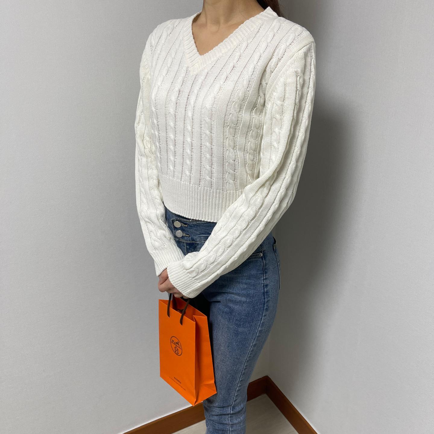 [자체제작/데일리니트] 데일리 브이넥 꽈배기 크롭 긴팔니트 (3color)