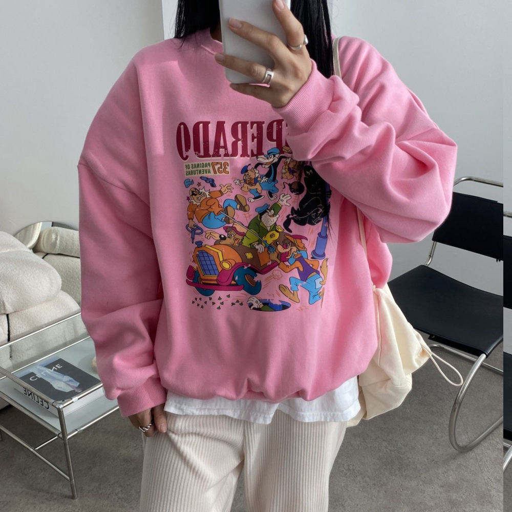 빅사이즈 예쁜 핑크 기모 프린팅 맨투맨