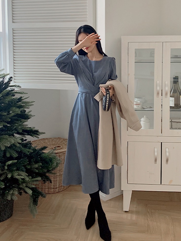 [2천장 돌파✨][무료배송] [44-120] 모티엔브 피치기모 스웨이드 랩스타일 꼬임 뒷리본 롱 원피스 ( 겨울신상-겨울-데일리룩-하객룩-데이트룩-빅사이즈-120사이즈-자체제작-리본-긴팔-랩원피스 )