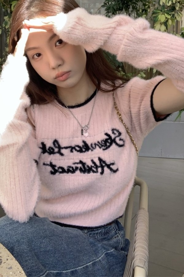 흘림채 레터링 라운드넥 반팔 긴팔 워머 니트 스웨터