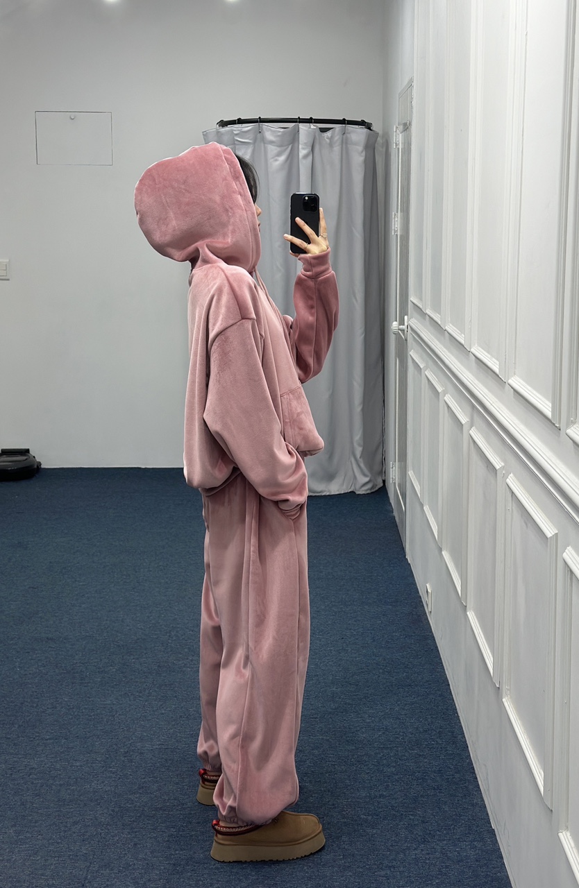 (세트) 벨벳츄리닝 남성용 츄리닝세트 커플츄리닝 남녀공용 유니섹스 트레이닝복 오버핏 루즈핏 박시 여유핏 플러스사이즈 벨루아 후드 와이드벌룬핏 조거팬츠(베이지,핑크,블랙)