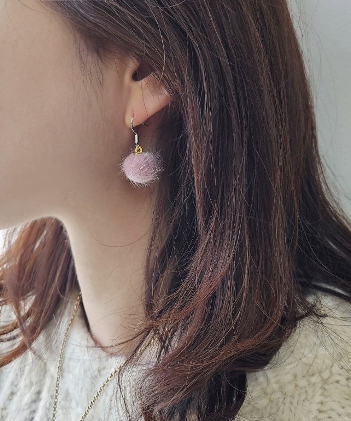 s925 방울 핑크 화이트 폼폼 후크 고리 귀걸이 아로브 CI770
