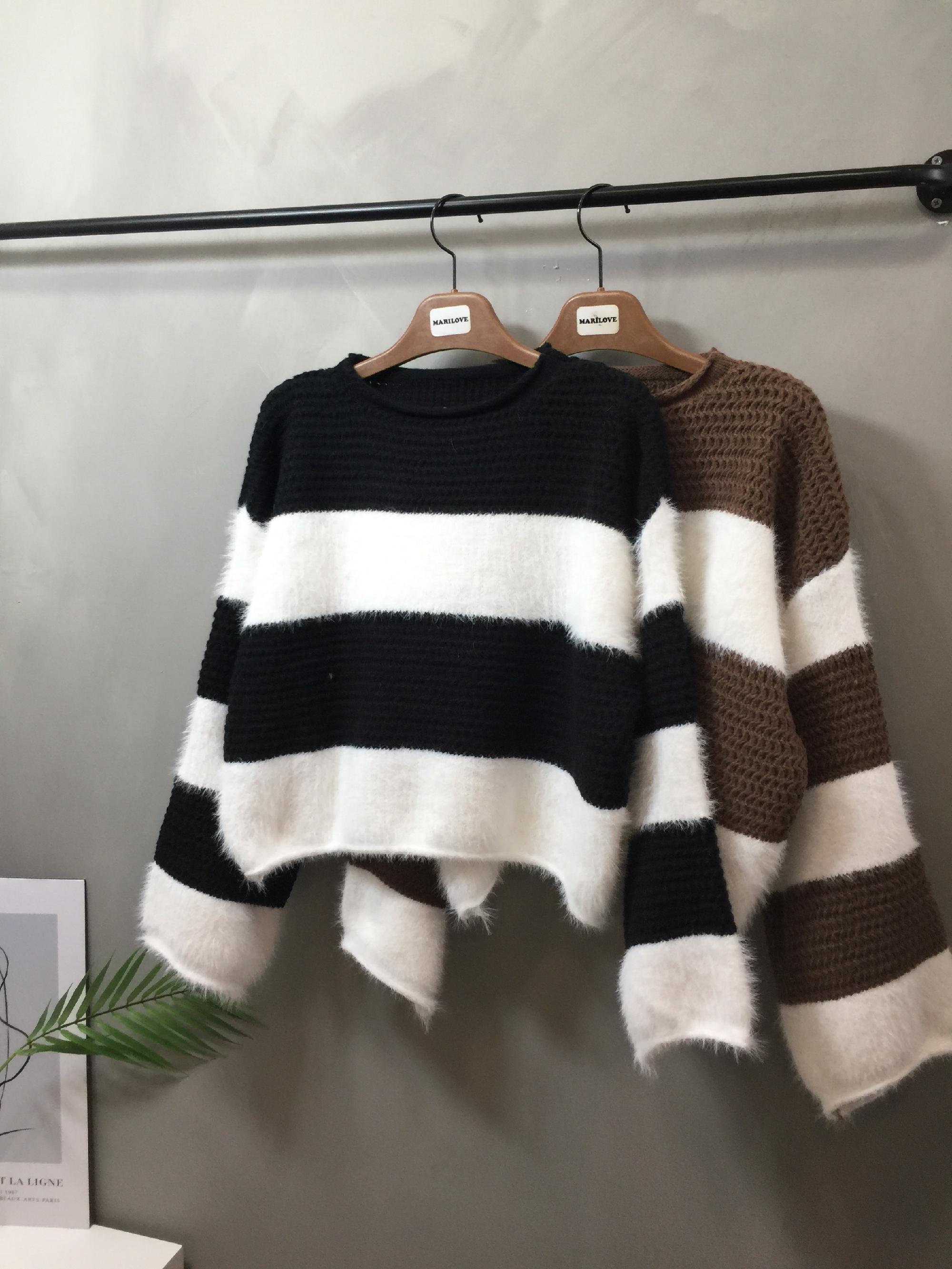 [무배]앙고라 배색 스트라이프 니트 2co