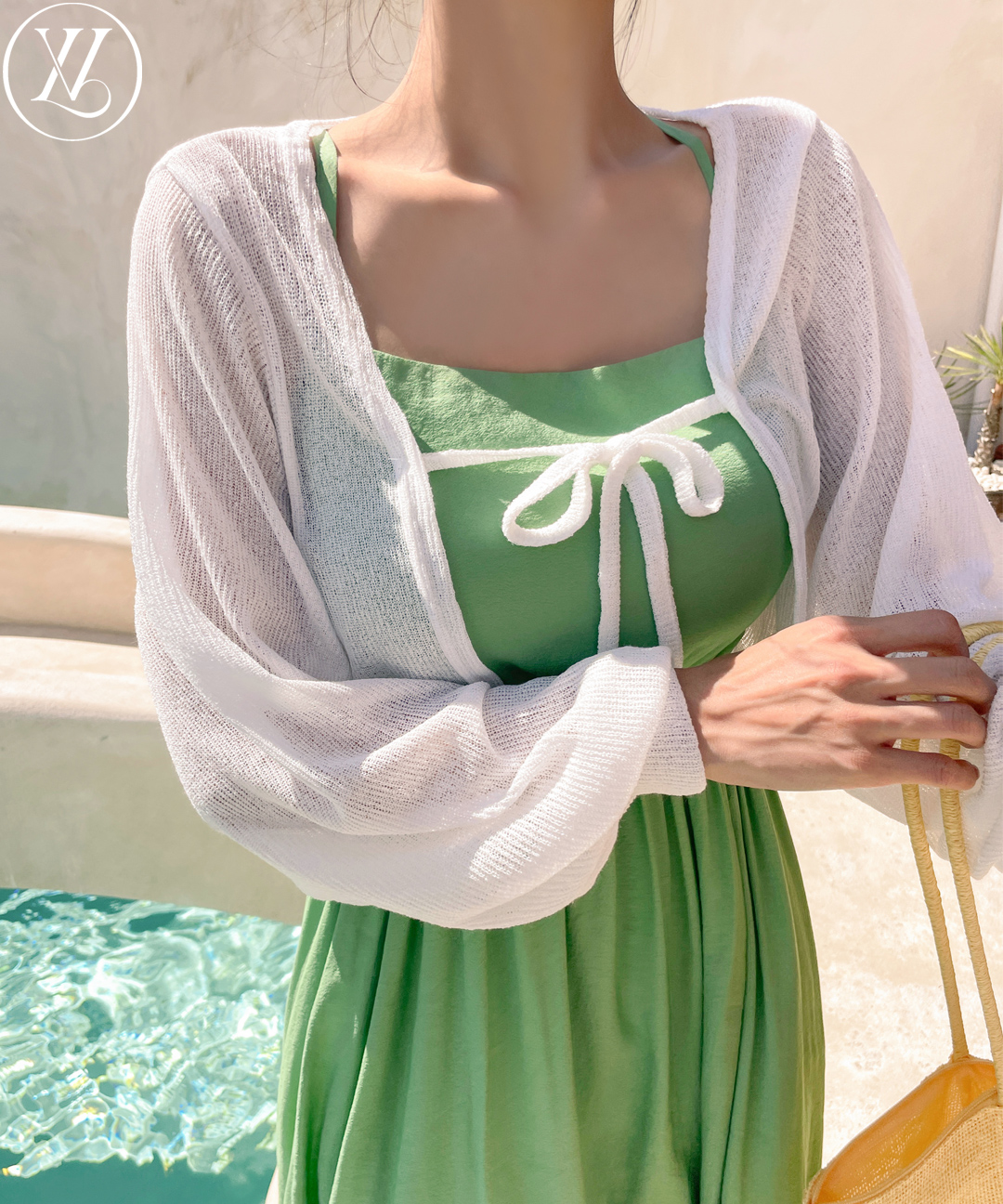 [MADE BY 비바럽][살안타템]리본 볼레로 가디건[여름/끈/스트랩/여름/가벼운/시원한/시스루/수영복커버업/크롭] CD19931F