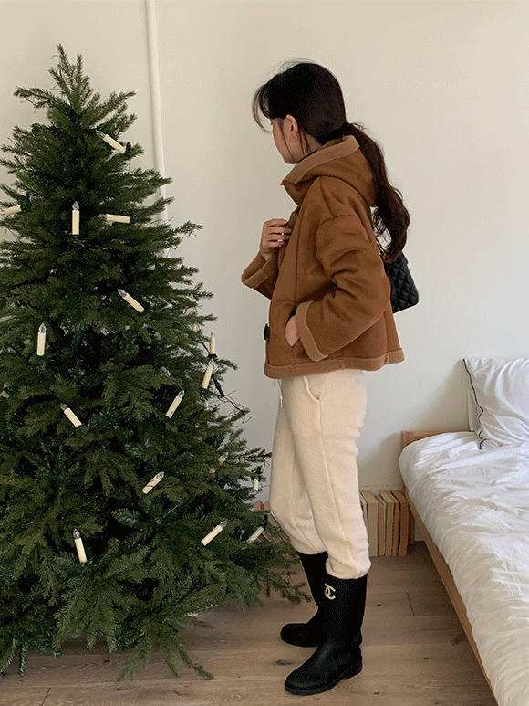 데니 더플 후드 카라 떡볶이 무스탕 하프 자켓 코트 점퍼 / 뽀글이자켓,뽀글이코트,하객룩,울자켓,숏자켓,숏코트,스웨이드무스탕,뽀글이무스탕,크리스마스,연말룩,퍼자켓