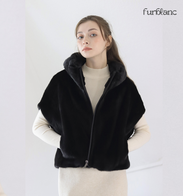 리얼 밍크 반후드 캡소매 가오리핏 조끼 베스트_FB3WVF104