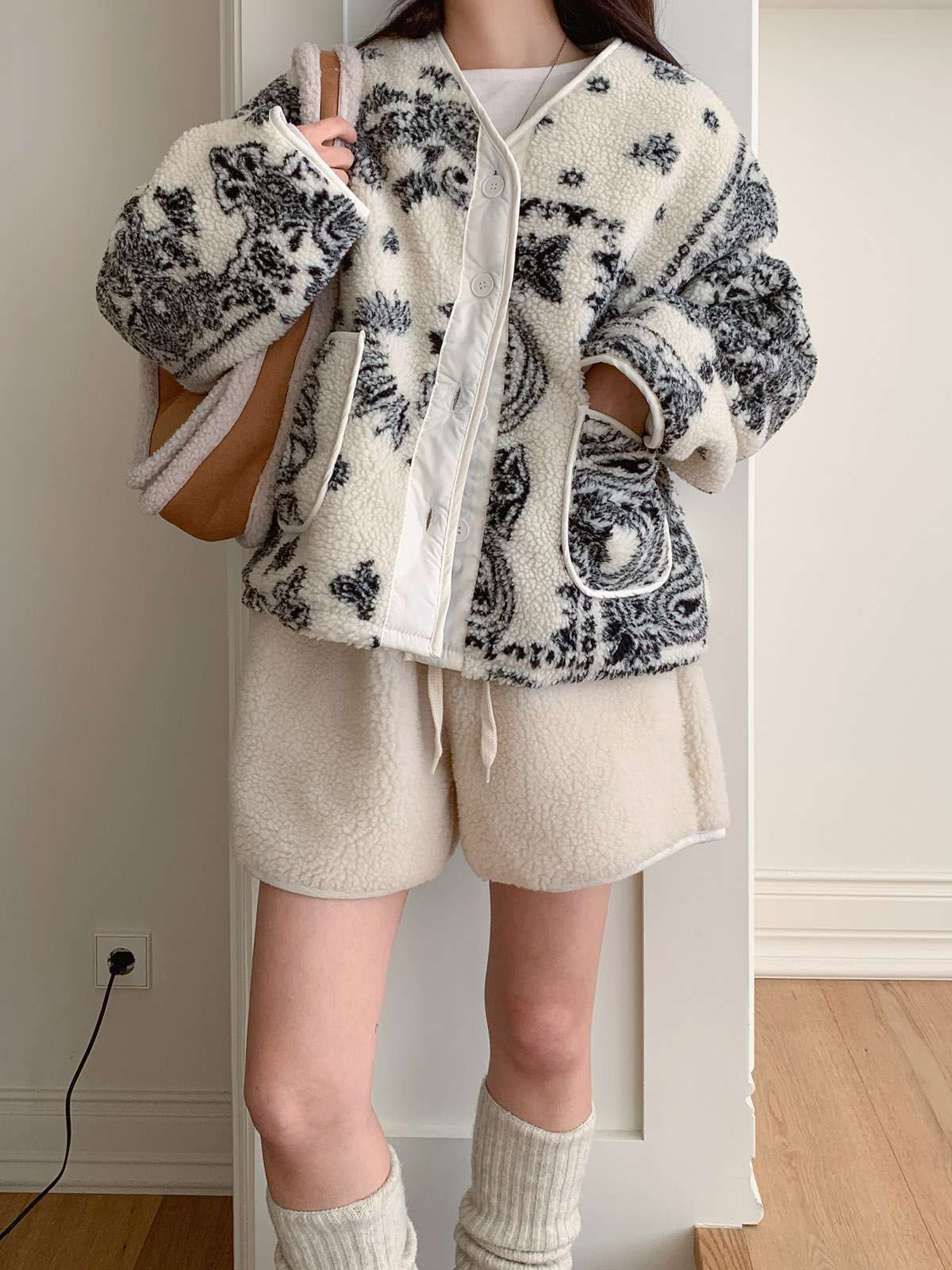 페이즐리 패딩 점퍼 양털 뽀글이 깔깔이 누빔 자켓