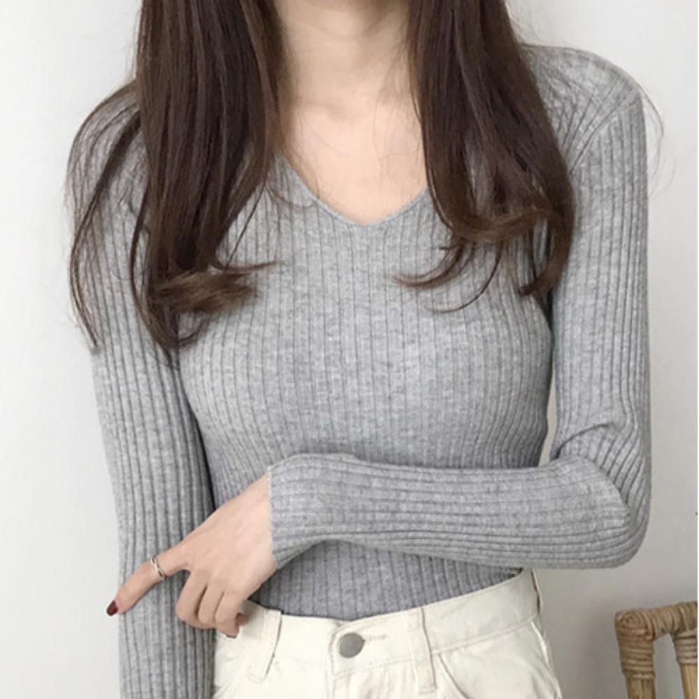베이직 슬림핏 브이넥 골지 니트 슬림 골지니트티