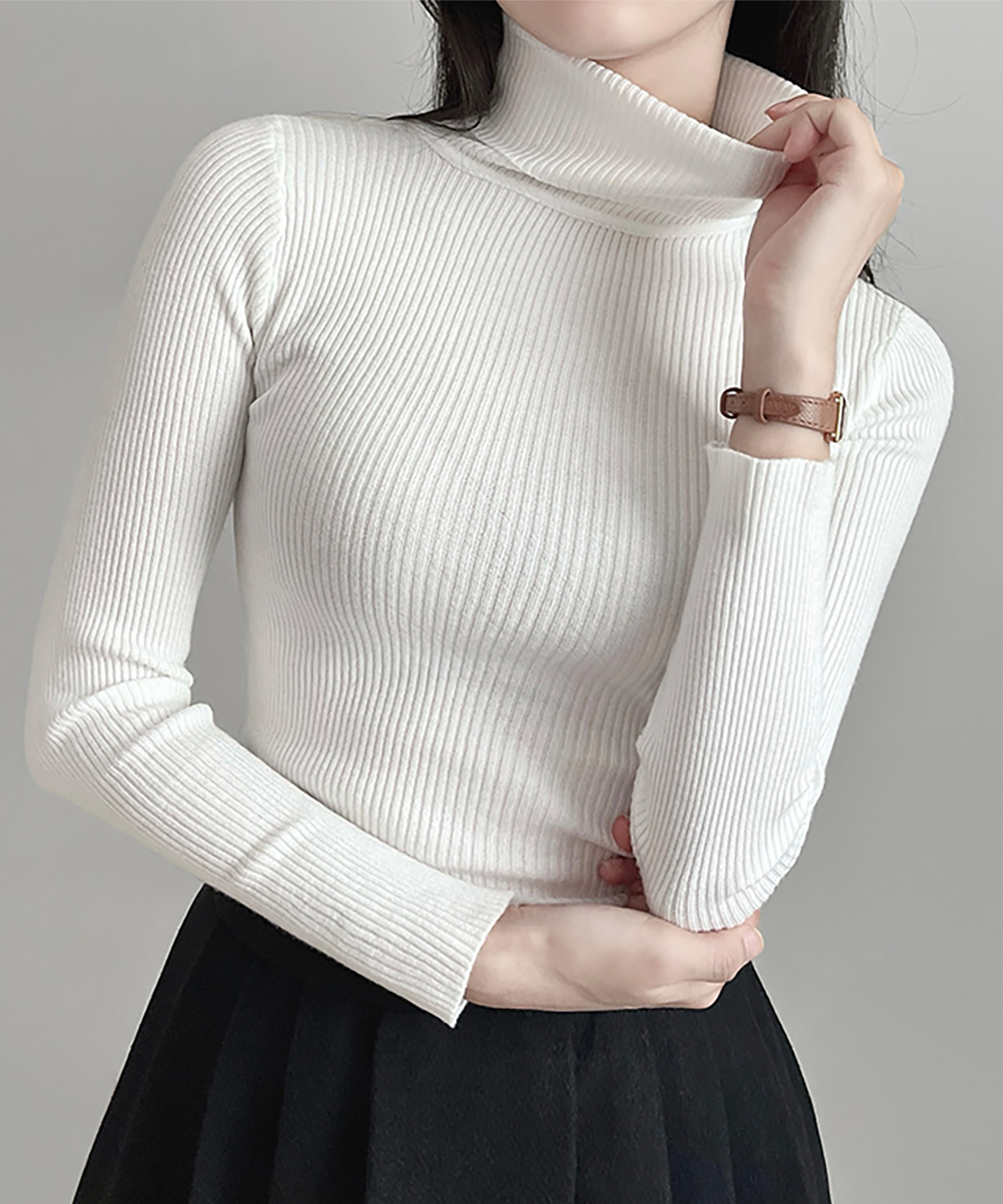 [1+1/몸매 예뻐보이는]겨울 베이직 여자터틀넥 목폴라 골지니트 슬림핏니트 (6color)