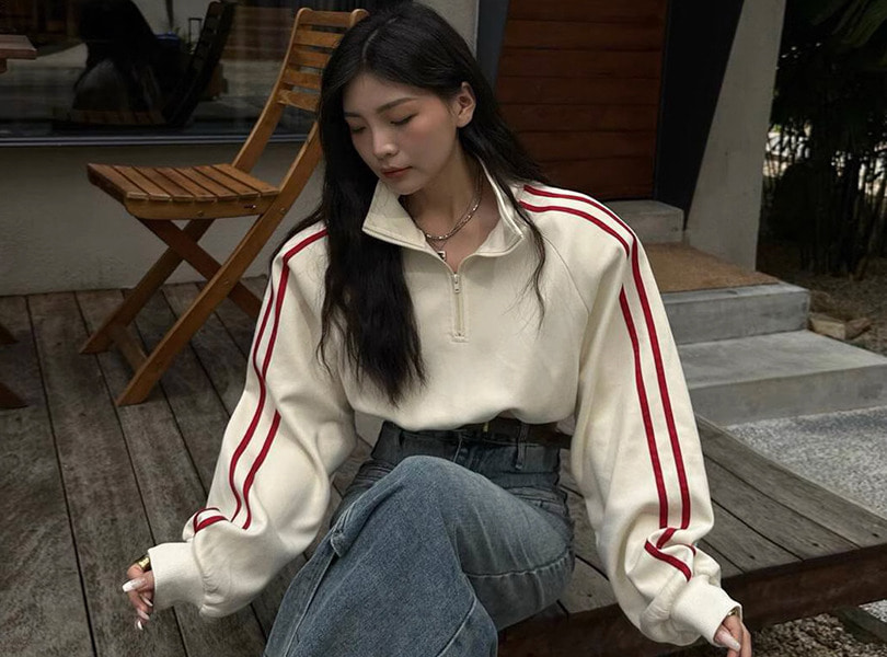 /스트링&크롭&반집업/ 아지스맨투맨티 캐쥬얼 긴팔 겨울신상 크롭맨투맨 집업맨투맨 배색라인 키치 하이틴 유니크 데일리룩 신상 체형커버