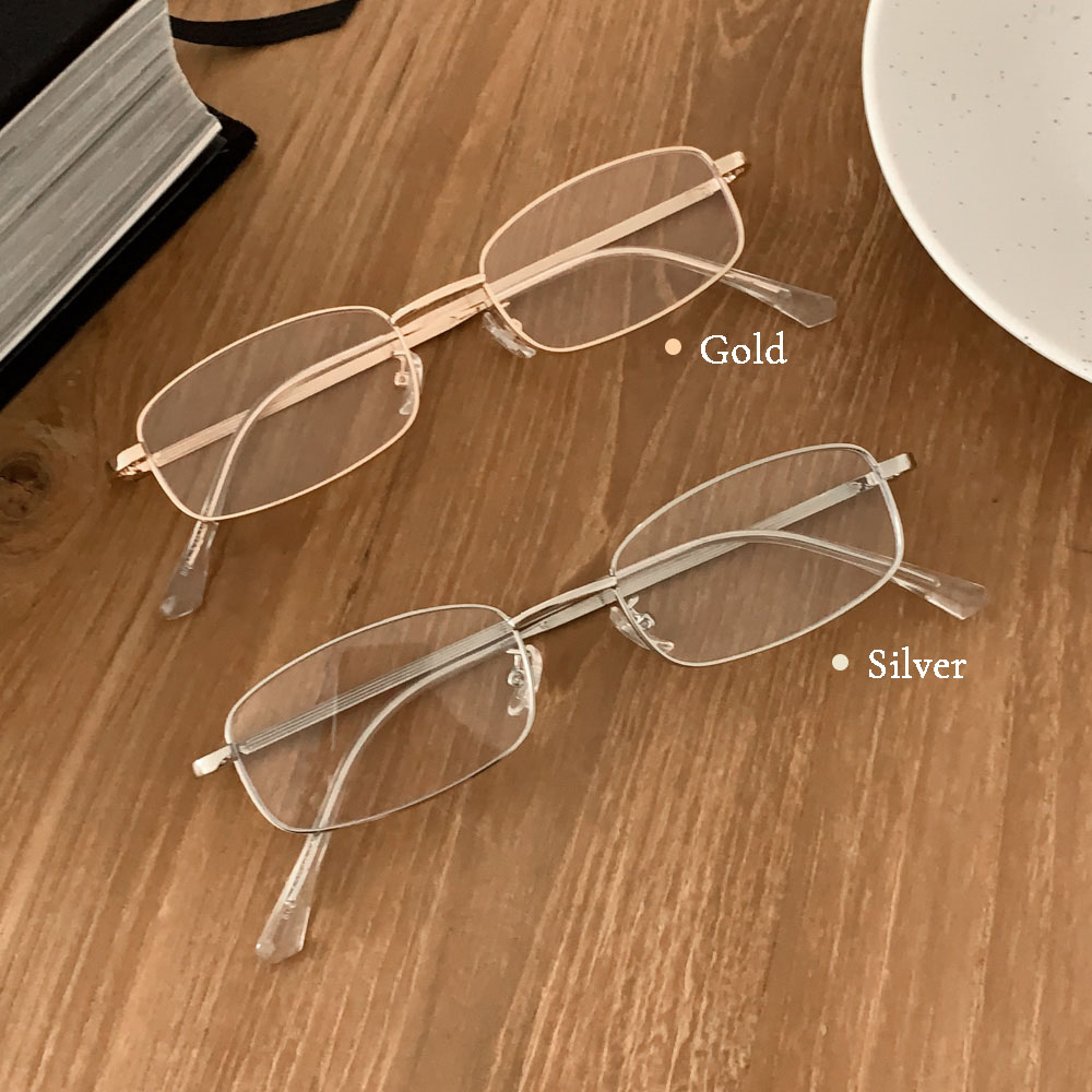 [유니크] 메탈즈 슬림 심플 남녀공용 직사각 뿔테 안경 2color