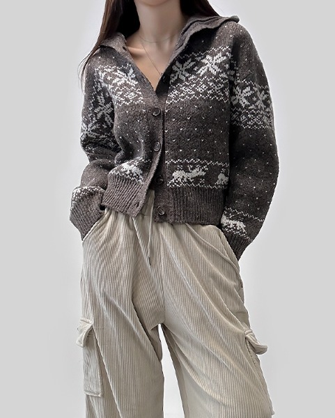 [노르딕/겨울감성] 베리아 하이넥 눈꽃사슴 빈티지 노르딕 코위찬 니트 버튼 가디건 연말룩 크리스마스 (3컬러)