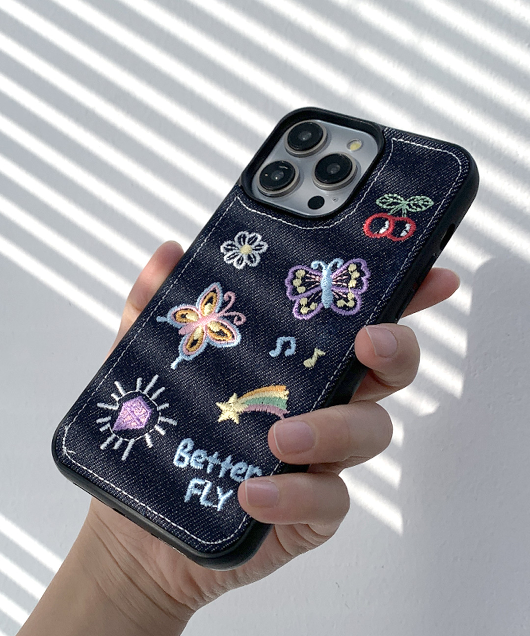 [당일출고]데님 자수 아이폰15 프로 케이스 귀여운 폰케이스