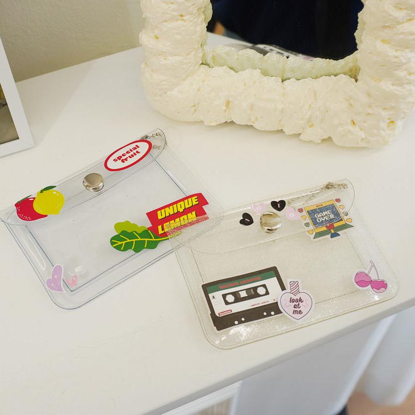 미니 글리터 PVC 투명 지갑 2type - 투명카드지갑 PVC지갑 포카 포토카드 지갑홀더 홀더 카드홀더 미니지갑 포카꾸미기 케이스 투명카드홀더 포토카드보관 똑딱이홀더