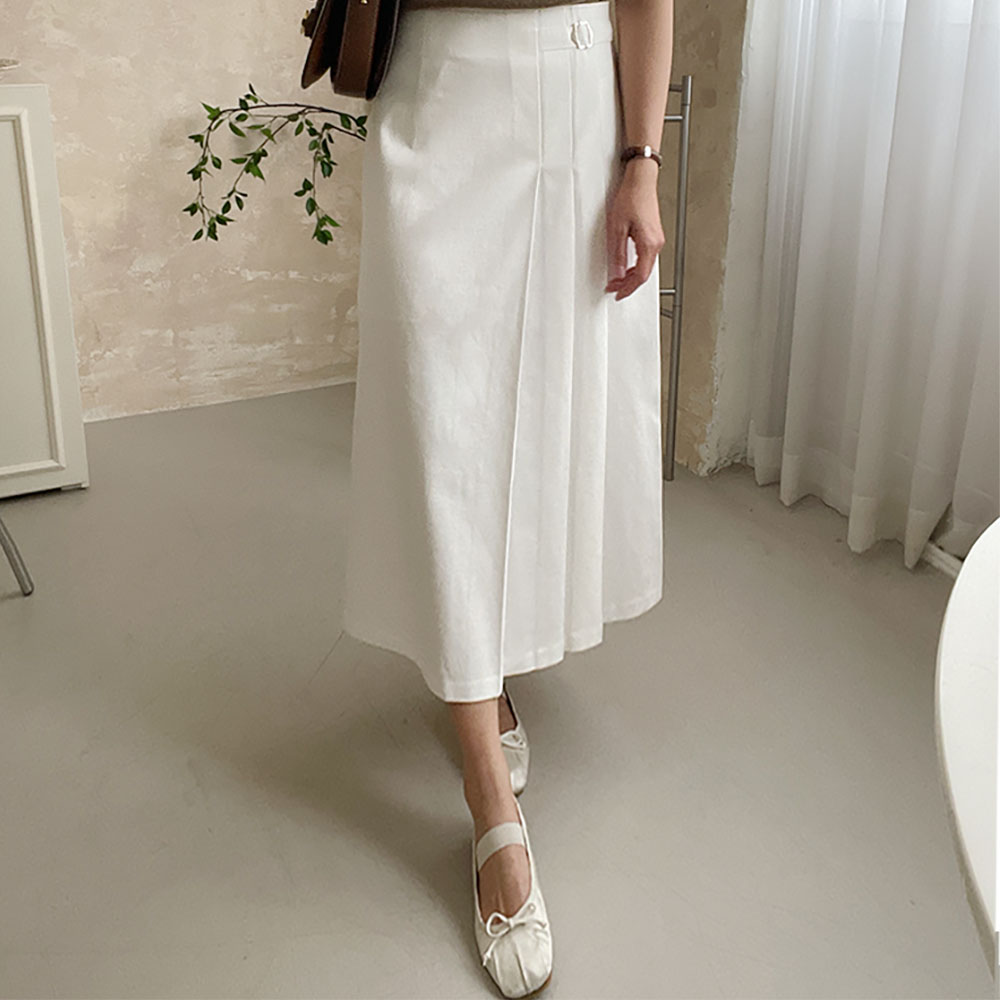 미디플리츠스커트 핀턱롱스커트 베이지치마코디 롱 플리츠 핀턱 플레어 버클 베이지 화이트 하객 단정한 스커트 흰 베이지 봄 치마