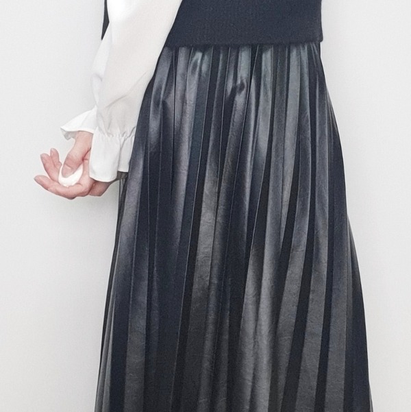 여성 레더 롱 플리츠 스커트 롱 가죽치마