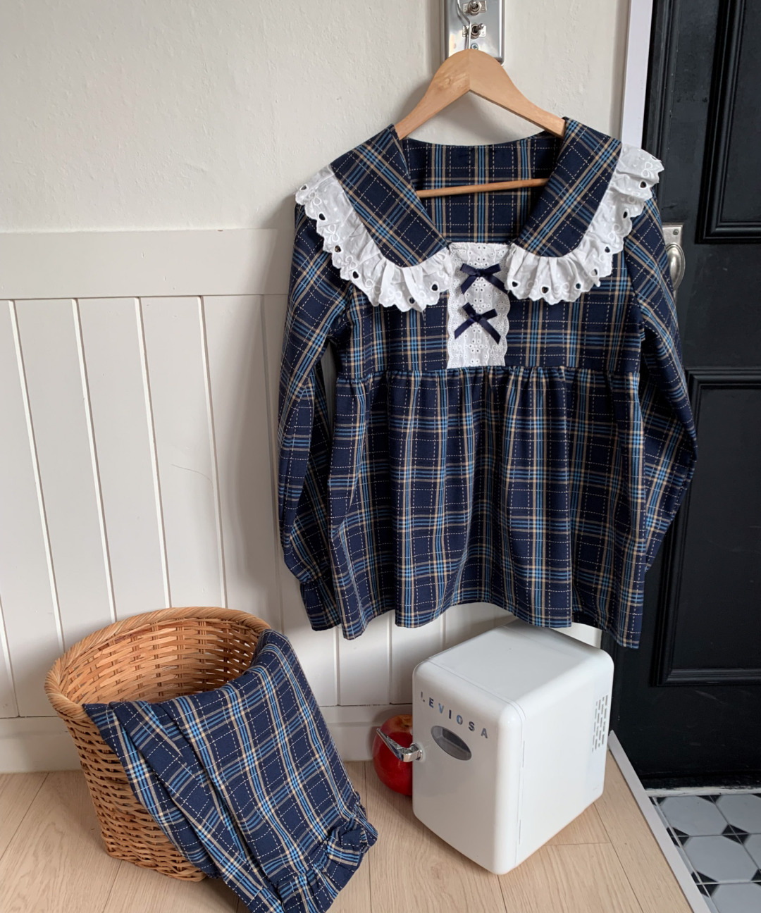 [커플잠옷💙]프릴 네이비 긴팔 간절기 가을 공주 홈웨어 세트 남자 파자마