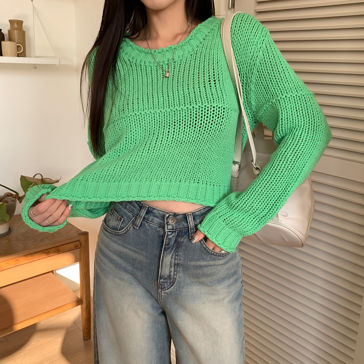 렌티넬 라운드넥 라인 세미크롭 긴팔니트