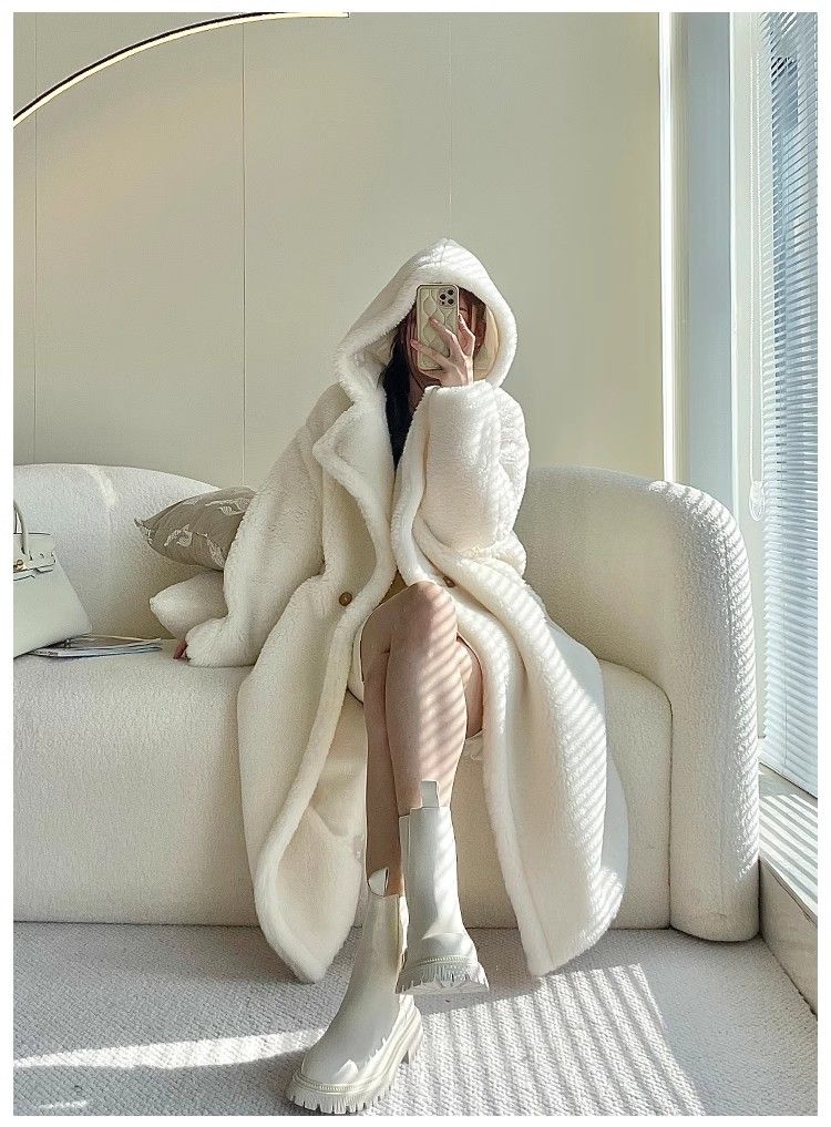 [당일출고🚀] 포근한 루즈핏양털 쉐이프후드퍼코트