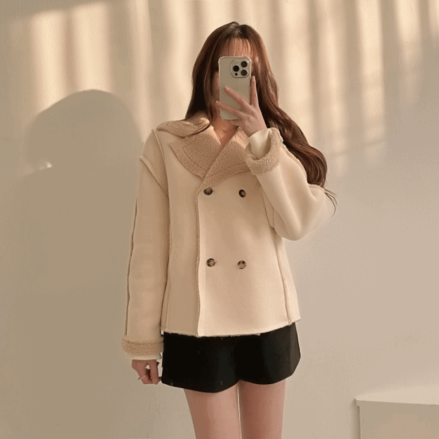 왕따뜻 양털 더블버튼 루즈핏 박스핏 세무 스웨이드 무스탕 자켓(베이지/브라운/블랙)