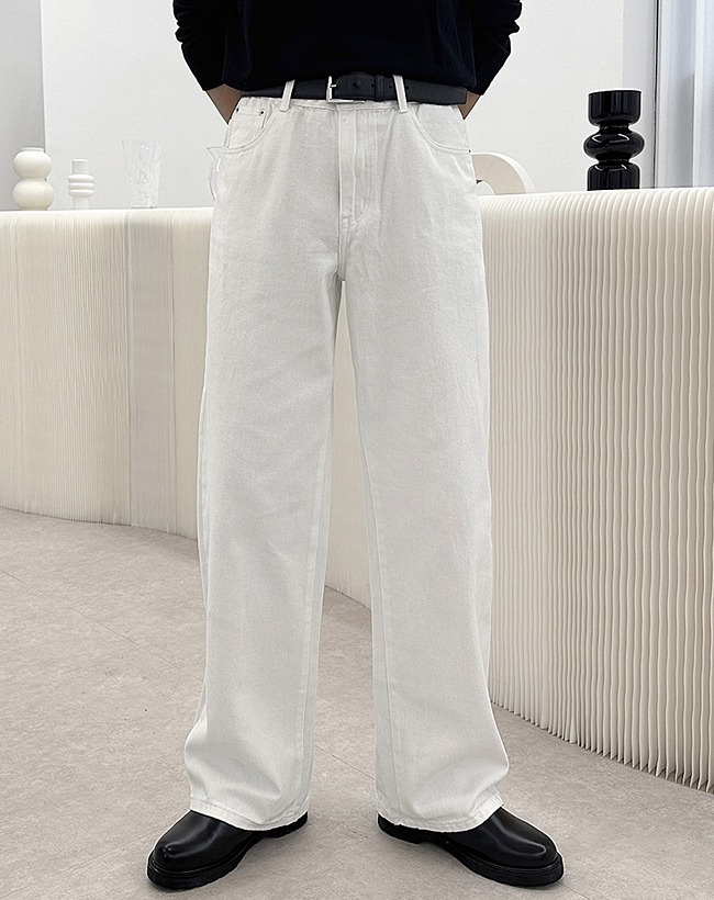 [남녀공용][유니섹스] 화이트데님 크림진 화이트진 와이드데님 남자청바지 남자친구선물 빅사이즈 청바지 통바지 남자화이트팬츠 백바지
