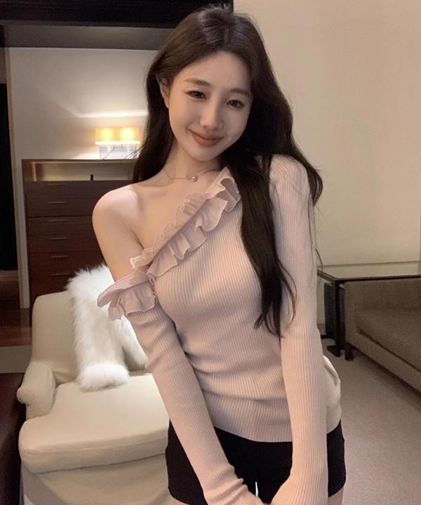 무료배송 슈가웨이브 원오프숄더 긴팔탑 (핑크,화이트)