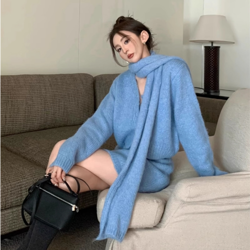 [니트투피스/겨울투피스세트/하객룩] 니트스커트 H라인 밴딩스커트 숏스커트 미니 / 니트스웨터 가디건자켓 배색 크롭니트 슬림핏 키작녀 셋업 자켓세트