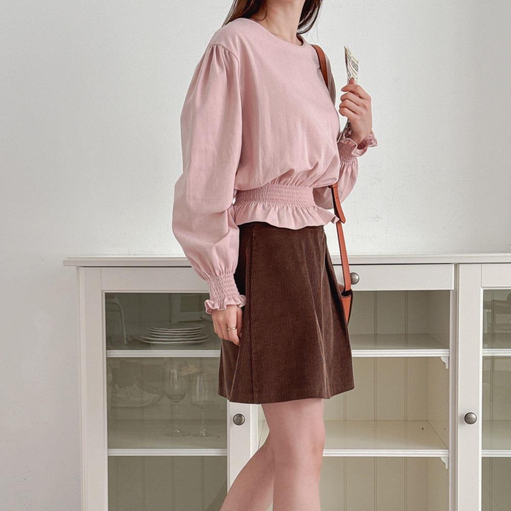 여자 노카라 소개팅룩 봄 스모크셔링 웨이브 블라우스