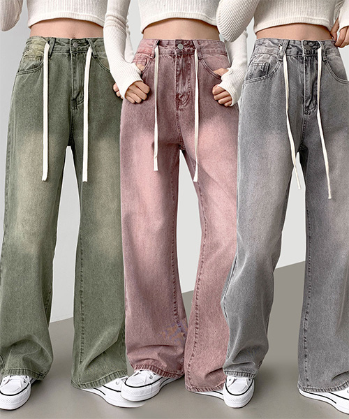 [컬러맛집/Y2K,인생핏]허리 조절 가능 뮤트 워싱 롱와이드 데님팬츠
